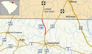 South Carolina Highway 742 (SC 742) is a 3.510-mile (5.649 km) primary state highway in the U.S. state of South Carolina. It connects Chesterfield with Wadesboro, North Carolina.