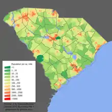 South Carolina's center of population is 2.4 mi (3.9 km) north of the State House in the city of Columbia.[2]