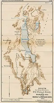 Lake Turkana has been fished and traversed for thousands of years by local tribespeople. In 1888, Samuel Teleki, a Hungarian explorer, set off to a trip in Eastern Africa specifically in northern Kenya and southern Ethiopia with Ludwig von Höhnel, an Austrian naval officer and explorer. They were the first Europeans to see many places including Lake Turkana which was named Lake Rudolf (named after the Crown Prince Rudolf of Austria) when it was discovered, Lake Chew Bahir which was named Lake Stefanie (named after Princess Stephanie of Belgium). They also saw the Teleki's Volcano (named after Teleki) and South Island. Teleki and Höhnel made many observations and discoveries about the local geography, the community and others. All of their work was published in a book called The Discovery of Lakes Rudolf and Stefanie in 1892 by Höhnel himself.[4]