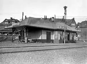 The original east–west rail line in the area was built in 1855 by the Great Western Railway (GWR). It connected Toronto to the east and Hamilton to the west, following the Lake Ontario shoreline, passing through the then-rural Parkdale area. By 1879, the population in the Parkdale area had grown and the GWR built the South Parkdale station.[1] It was named "South Parkdale" to distinguish it from the existing Parkdale railway station at Dufferin Avenue and Queen Street, which was renamed "North Parkdale." In 1882, the GWR was absorbed into the Grand Trunk Railway which took over the line and the South Parkdale station became a GTR station.[1]