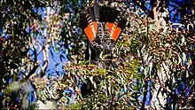 Carnaby's black cockatoo (Zenda latirostris) is endemic to south-west Western Australia and is listed as endangered under the EPBC of 1999.[15] Other birds to inhabit Jarrah Forest include rare birds such as the forest red-tailed black cockatoo (Calyptorhynchus banksii naso), Muir's corella (Cacatua pastinator pastinator), black-throated whipbird (Psophodes nigrogularis), western bristlebird (Dasyornis longirostris), noisy scrub-bird (Atrichornis clamosus) and Baudin's black cockatoo (Calyptorhynchus baudinii).[8][16]