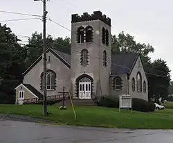 Sparta First Presbyterian Church is a historic Presbyterian church located at Groveland Station in Livingston County, New York. The building is a simple but sophisticated combination of Arts and Crafts principals and freely styled Tudor Gothic detailing executed with modern building materials. It was constructed in 1915-1916 and is composed of a large principal gable block with a gabled wing. It features a crenellated tower rising a full story above the ridgeline of the roofs.[2]