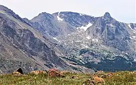 Sprague Mountain is a 12,713-foot-elevation (3,875-meter) mountain summit on the boundary shared by Grand County and Larimer County, in Colorado, United States.[2] It is set on the Continental Divide in the Front Range of the Rocky Mountains, and 12.5 miles (20.1 km) west of the community of Estes Park. Precipitation runoff from the mountain's east side drains into tributaries of the Big Thompson River and the west slope drains into headwaters of Tonahutu Creek which flows to Grand Lake. Topographic relief is significant as the summit rises over 1,900 feet (580 meters) above Tonahutu Creek in one mile. The peak is visible from Trail Ridge Road.