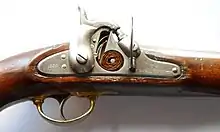 In 1793, the National Arsenal contained brass ordnance, howitzers, traveling carriages, shot strapt, canisters filled, quilted grape, iron shot, shells, powder, musket ball, cylinders, caps, paper cartridges, fuzes filled, muskets, swords, various military stores, and implements.[9] In 1795, the Springfield Armory produced the new nation's first musket - the Model 1795 Musket which was largely patterned after the French Charleville musket which had armed the French army during the American Revolution.