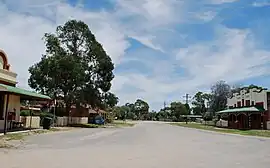 ![]() The main street of Springhurst, 2009. The post office is on the left, the Carriers Arms Hotel on the right | |