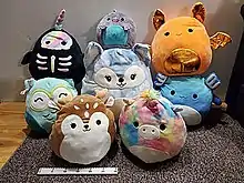 Squishmallow is a brand of anthropomorphic stuffed toy that was launched in 2017 by Kelly Toys Holdings LLC. Squishmallows are round and come in a variety of colors, sizes, animals, and textures. The brand has created over 1,000 Squishmallows characters with unique names and background stories.[1][2]