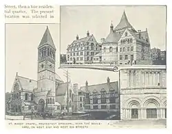 The three buildings were built between 1890 and 1892 to the designs of architect Potter. The New York Times described the chapel as “the finest church structure, barring the cathedral, in New York City.”[3] The chapel entrance was on West 92nd Street, whereas the parish house and clergy house, flanking the chapel's apse, were entered on West 91st Street.
