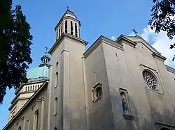 At the beginning of World War II, it was damaged, when ammunition located in the church exploded.[1] The church witnessed heavy fighting during the Warsaw Uprising of 1944.[1] After the fall of the uprising, Nazi authorities expelled the clergy and worshippers and blew up the building.[1] The destruction was heavy, as only the foundations and basements survived. From 1946 the church was gradually rebuilt again. The reconstruction was finally finished in November 1957 and consecrated by Cardinal Stefan Wyszyński.[1] While the exterior of the church is similar to the pre-war one, its interior is different.