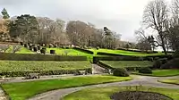 From 1862, the Tremeirchion Cross stood at the entrance of St Beuno's. It is a medieval stone carved cross. In the 16th century, it was described in his writings by the poet, Gruffydd ab Ieuan ap Llywelyn Fychan of Llanerch.[5] It was originally in the churchyard of the local parish Corpus Christi Church in Tremeirchion. In 1862, the church sold it for £5 to raise funds to buy new lamps. It was bought by a Mr J. Y. Hinde of Rhyl who then gave it to St Beuno's. In 2002, St Beuno's gave it back to the local church, where it now stands in the churchyard, where it is a Grade II listed monument.[6]