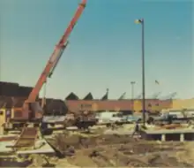The construction of the Lester J. Norris Sports Complex during the early 1980s. Pictured in the background is STCE's original solar heating system.