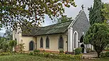 The church was finally erected by public subscription in the memory of Major Thomas William Rogers, (the Government Agent for Badulla District) who is said to have shot, at the very lowest estimate 1,400 wild elephants.[4] He died on 7 June 1845, struck by lightning at Sherwood estate in Haputale. He was buried in Nuwara Eliya, where his tomb was also struck by lightning numerous times.[4][5] The church was consecrated on 25 April 1857 (St. Mark's day) by Bishop Chapman.[3]