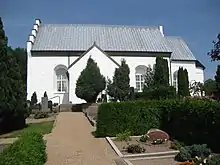 Located on a hilltop in south-eastern Bornholm, St. Paul's, the youngest of the island's Romanesque churches, consists of an apse, chancel and nave. Built c. 1248, it is distinctive in that it does not have an integrated tower. It does, however, have a separate, well-designed bell tower with a half-timbered belfry which originally served as the gateway to the churchyard. In 1871, the nave was lengthened some 4 metres towards the west. A fleur-de-lys can be seen above the door of the south porch.[1][2]