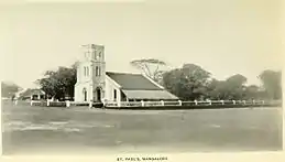 St. Paul's Church is located at the south-west corner of the Nehru Maidan (formerly the Central Maidan) in Mangalore. It was the first Protestant church to be raised in the South Kanara region. St. Paul's was originally a garrison church, raised by the British India army of the Madras Government, built using prison labour.[1][2] St. Paul's is an imposing structure amidst the chaos of the fish market, service bus stand, and the State Bank of India.[3]