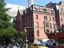 By 1879 the construction was expanded and on December 12, a second church was dedicated. Its first Mass was celebrated on the feast day of St. Vincent Ferrer, September 8, 1879. At the same time the order decided to build a priory at the church to serve as its provincial headquarters. It commissioned William Schickel, a German-born architect who had recently completed his first major work in New York, the John Crimmins House at 40 East 68th Street. The priory's intricate use of materials and its overall polychromy, characteristics of the High Victorian Gothic style popular in the late 19th century, reflect Schickel's training in Bavaria and the strong influence there of Friedrich von Gärtner. It was the first of many buildings Schickel would design for the New York diocese.[1] Five years later, in 1884, the first school was built.
