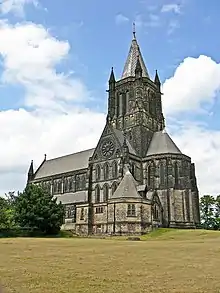 A new church was built starting in 1872 to designs by the architects Henry Walker and Joseph Althron of Leeds, and is now a Grade II* listed building.[2] It was consecrated in 1877 but the tower was not dedicated until 1904. The church is constructed of Horsforth sandstone. The old chapel was demolished in 1909.