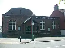 In 1903, the Bishop of Chichester Ernest Wilberforce opened a mission hall to serve the northern part of St Leonard's and St Philip's parish.[17] The Holy Cross Church, as it was called, then became part of St Philip's parish in 1912,[10] but gained its own parish in 1932 and is now linked to the Bishop Hannington Memorial Church.[19] The building had been used as a church hall and social venue as well as a place of worship until 1932. Although the vicar of St Philip's later acquired land for a new hall, no such facility was ever built, which encouraged the conversion of part of the church into a hall in 1956.[12][17]
