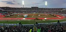 The Stadion Śląski (Polish: [ˈstadjɔn ˈɕlɔ̃skʲi]; English: Silesian Stadium) is a sport stadium located on the premises of Silesian Park in Chorzów, Poland. The stadium has a fully covered capacity of 55,211,[1] after a recent refurbishment completed in October 2017. The stadium hosted many Poland national football team matches and for many decades was Poland's national stadium. After the National Stadium in Warsaw had been completed, the Silesian Stadium lost that role. The stadium was not in operation between 2009 and 2017 due to its ongoing reconstruction.
