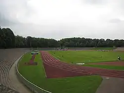 Stadion Gladbeck is a multi-use stadium in Gladbeck, Germany. It was used as the stadium of Germania Gladbeck before they disbanded. The stadium has 15,000 seats in total, and houses all kind of facilities for athletes.[1] During WWII, the stadium was badly damaged by the Allied Forces. The three entrance structures and the standing wall of the east side was destroyed, with bomb craters in the field. It was fixed by the good samaritans of the city in 1947. In October 2008, the stadium was used to shoot a film.
