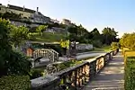 The Ferrari Garden (Slovene: Ferrarijev vrt) is a major landmark in the settlement and one of the most visited ones. It was designed by Max Fabiani at the request of the physician Enrico Ferrari in the 1920s.[8] The garden is located below the village, next to a villa, and houses a small pool with an island which is connected by a bridge to the shore. The location is popular among tourists because of its design and the view it offers of the Karst landscape below.[9] The park has been declared a natural park and a national monument by the Government of Slovenia.