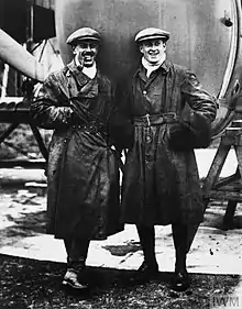 ![]() Frank Crossley Griffiths Broome (left) and Stanley Cockerell before their start in Vickers Vimy Commercial G-EAAV in 1920 to fly to the Cape. | |