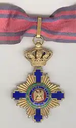 The Order of the Star of Romania (Romanian: Ordinul Steaua României) is Romania's highest civil Order and second highest State decoration after the Order of Michael the Brave. It is the oldest Order of Romania. It is awarded by the President of Romania, and has six grades, from lowest to the highest: Knight, Officer, Commander, Grand Officer, Grand Cross, and Grand Cross with Collar.