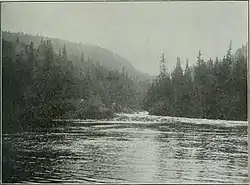 The Steel River was likely used as a minor supply or fur-trading route in the 19th century. One indigenous burial site has been found along the river. It was first advertised as a canoeing destination in the 1890s by the Canadian Pacific Railway, that crosses the river near its mouth.[3] The Steel River can be paddled as a circular loop via a 1 km-long (0.62 mi) portage (albeit with a strenuous 350 m (1,150 ft) climb) from Santoy Lake to Diablo Lake and on to Cairngorm Lake.[4]