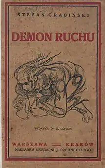 However, this book impressed Polish decadent writer and literary critic Karol Irzykowski. They became good friends, and Irzykowski supported Grabiński's career. In 1920, Grabiński presented a collection of his mystic railway stories called The Motion Demon (Demon Ruchu). Eventually, the following collections of short stories appeared: Pilgrim’s Madness (Szalony Pątnik, 1920), An Incredible Story (Niesamowita Opowieść) and The Book of Fire (Księga Ognia, 1922). His longest prose work, Passion (Namiętność), written in 1930, was inspired by his trip to Italy, most notably Venice.