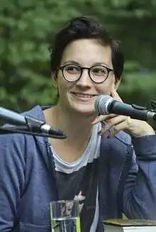 Stefanie de Velasco (born 1978 in Oberhausen) is a German novelist as well as contributor to such publications as Die Zeit, Zitty, and the Frankfurter Allgemeine Zeitung.[1] Born to a Spanish immigrant mother and a German father, de Velasco grew up in the Rhineland and studied in Bonn, Berlin and Warsaw. Her debut novel Tigermilch was published in 2013 to critical and commercial success.[2][3] It has been translated into numerous languages; the English translation by Tim Mohr, titled Tiger Milk, was nominated for the Independent Foreign Fiction Prize and long-listed for the International Dublin Literary Award in 2015.[4][5][6] Tigermilch has been adapted for the stage as well as a feature film that debuted in August 2017.[7][8]