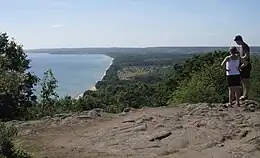 The hill is 97 m (318 ft) high and faces the Baltic Sea. Since the surrounding landscape is relatively flat, it can be seen from a great distance and has traditionally been used as a landmark for seafarers. Many visitors trek up the hill to enjoy the view which is very good in clear weather.