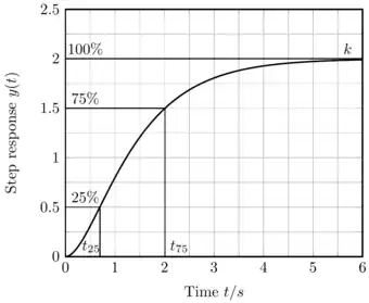 - Determine the time-spans and where the step response reaches 25% and 75% of the steady state output value.