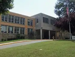 Stratford Junior High School is a historic junior high school building located in the Cherrydale neighborhood of Arlington, Virginia. It was designed in 1949, and built in 1950. An addition was built in 1995. It is a two- to three-story, concrete post-and-beam building clad primarily in buff brick and sandstone veneer. The building is in a high-style International Style architecture. It features a two-story, three bay projecting portico of exposed concrete on four tapered concrete columns. Other features include a flat parapet roof, decorative minimalism, and the strong horizontal qualities of the building emphasized by the use of finishing materials and banded windows.
