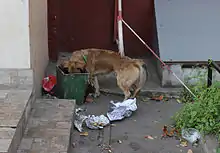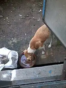 Street dogs, known in scientific literature as free-ranging urban dogs,[1][2] are unconfined dogs that live in cities. They live virtually everywhere cities exist and the local human population allows, especially in the developing world. Street dogs may be stray dogs, pets which have strayed from or are abandoned by their owners, or may be feral animals that have never been owned.[3] Street dogs may be stray purebreds, true mixed-breed dogs, or unbred landraces such as the Indian pariah dog. Street dog overpopulation can cause problems for the societies in which they live, so campaigns to spay and neuter them are sometimes implemented. They tend to differ from rural free-ranging dogs in their skill sets, socialization, and ecological effects.
