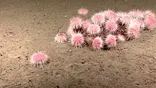 ahStrongylocentrotus fragilis (pink) with some Strongylocentrotus pallidus (white).