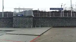 Sucha Beskidzka Zamek railway station is a railway station in Sucha Beskidzka (Lesser Poland), Poland. As of 2022, it is served by PKP Intercity (EIP, InterCity, and TLK services). This station is located about 2 km East of the town's principal railway station (Sucha Beskidzka railway station). This station is named after the nearby Castle of Sucha Beskidzka, as the word Zamek means castle.