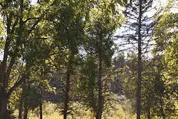 ![]() Heavily wooded and on private land, this is a largely obscured view of the area of the site | |