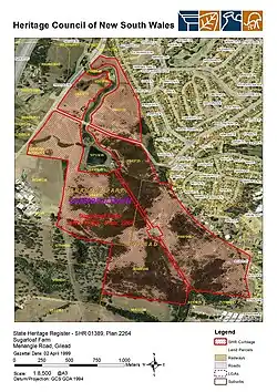 - 1 2 3 4 5 6 7 8 9 10 11 12 13 14 15 16 17 18 19 20 21 22 23 24 25 26 27 28 29 30 31 32 33 34 35 36 37 38 39 40 41 42 43 44 45 46 47 48 49 50 51 52 53 54 55 56 57 58 59 60 61 "Sugarloaf Farm". New South Wales State Heritage Register. Department of Planning & Environment. H01389. Retrieved 2 June 2018.