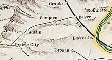 Sumpter Valley Railway route map | ||||||||||||||||||||||||||||||||||||||||||||||||||||||||||||||||||||||||||||||||||||||||||||||||||||||||||||||||||||||||||||||||||||||||||||||||||||||||||||||||||||||||