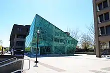 At the center of campus is the Samuel Dorsky Museum of Art, which opened in 2001. With more than 9,000 square feet of exhibition space in six galleries, the Dorsky is one of the largest art museums in the SUNY system.[26] The East Wing includes the Morgan Anderson Gallery, Howard Greenberg Family Gallery, Sara Bedrick Gallery, and the Corridor Gallery, and the West Wing includes the Alice and Horace Chandler Gallery and the North Gallery. The Dorsky's permanent collection comprises more than 5,000 works of American Art (with emphasis on the Hudson Valley and Catskill Regions), 19th, 20th and 21st century photography, metals, and a "world collection" of art and artifacts dating back to ancient times and representing diverse cultures. Through its collections, exhibitions, and public programs, the Dorsky supports and enriches the academic programs at the college, presents a broad range of world art for study and enjoyment, and serves as a center for Hudson Valley arts and culture.[27] The Dorsky's facilities include research and seminar rooms for visitors, students and professors at SUNY New Paltz.