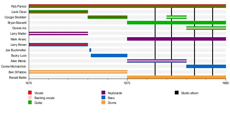 Past members | Rob Parissi Ben Difabbio Louie Osso Larry Brown Larry Mader Coogie Stoddart Joe Buchmelter Bucky Lusk Ron Beitle Bryan Bassett Allen Wentz Donnie Iris Cooke Michalchick Mark Avsec |