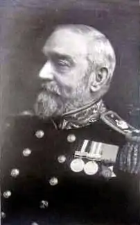 Eardley-Wilmot was born into a military family - he had four elder brothers, three of whom (William, Revell and Frederick) were army officers.[1] He joined the Royal Navy on 9 June 1860 and served on HMS Emerald and HMS Duncan as a midshipman. He received the Canadian General Service Medal in 1866 for services related to the Fenian raids of 1866.[3] He was promoted to the rank of lieutenant in 1869. In January 1870, he joined HMS Zealous in the Pacific on which he served for three years and about which he later edited an account of the voyage given by the officers. He was then posted to HMS Excellent to train as a gunnery lieutenant where he served under and was influenced by Commander John Fisher, later Lord Fisher, with whom he became close friends.[1]