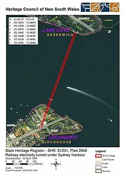 - 1 2 3 "Sydney Harbour (Balmain to Greenwich) Railway Electricity Tunnel". New South Wales State Heritage Register. Department of Planning & Environment. Retrieved 30 September 2018.
