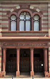 The Synagoge Zürich Löwenstrasse is the oldest and largest synagogue in the Swiss municipality of Zürich. In 1884 built in Moorish style, the oldest synagogue of Zürich also houses the prayer and school house of Israelitische Cultusgemeinde Zürich (ICZ) which was founded in 1862. ICZ is a unified Jewish community having about 2,500 members, and thus the largest Jewish community in Switzerland, which since 2007 in the Canton of Zürich is recognized as a denomination, i.e. it has the same legal state as the Christian denominations. In the synagogue, the community celebrates the daily Minyan and Shabbat and holiday services.[1] The synagogue is a cultural heritage of national importance in Switzerland.