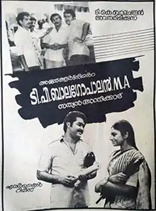 T. P. Balagopalan M. A. is a 1986 Indian Malayalam-language comedy drama film directed by Sathyan Anthikkad and written by Sreenivasan from a story by Anthikkad. Starring Mohanlal in the title role, along with Shobana, Balan K. Nair, Kuthiravattam Pappu, Maniyanpilla Raju, Sreenivasan, Sukumari, and K. P. A. C. Lalitha.[1][2] The story follows T. P. Balagopalan, who struggles to make ends meet and his romantic life with Anitha.