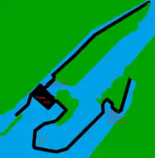 Portland General Electric's (PGE) T. W. Sullivan Hydroelectric Plant is a hydroelectric dam on the Willamette Falls built between 1888 and 1895. It is the source of the nation's first long-distance power transmission.[1] The plant first opened with Station A in 1889. In 1895 a second powerhouse was built on the same dam, Station B, and Station A was removed. Station B. In 1953 Station B was renamed after the engineer, Thomas Sullivan, who designed it and the nearby paper mills. The Willamette Falls Paper Company was on the northwest bank, whereas the Blue Heron paper mill was across the river in Oregon City. By that year, the plant was generating between 11,000 and 17,500 kilowatts, which it still does today.[2][3] PGE's Sullivan Plant at Willamette Falls is one of only a few dozen hydro-plants in the country officially designated as "Green."[4][5] In the 1920s a portion of the paper mill was put on top of the dam, which is still operating.