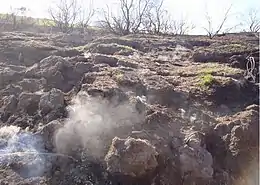 In the hot summer of 2009, smouldering dry peat fires broke out in the area. Such fires were not a new phenomenon in the region; they had affected the peatlands alongside the Guadiana in previous years, but by reappearing in the National Park, the fires represented another symptom of the wetland's degradation.[10]