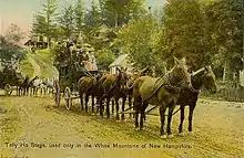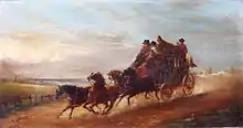 A fast stagecoach named Tally-ho plied the 125 miles (201 km) between London and Birmingham from 1823. The coach was operated by Sarah Mountain.[5] Other fast coaches began to use the same name and it became a common description of a fast coach.[6]