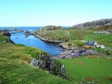 Tarbet (Scottish Gaelic, An Tairbeart) is a hamlet in Sutherland, on the west coast of Scotland. It is the nearest port of contact to the Scottish Wildlife Trust's national nature reserve of Handa Island, and a small ferry operates between the two. The few buildings include the Shorehouse seafood restaurant, which Rick Stein once visited and gave a good review to, partly because it had taken him so long to reach it. Like neighbouring Handa, Tarbet hosts a good wildlife population, including the true wild form of the rock pigeon, which lives on the cliffs that surround the hamlet. Ravens and buzzards fly over the area and unlikely populations of house sparrows, robins and pied wagtails live near the restaurant. Because it is the only settlement for a large distance around, many power lines bring electricity to it.