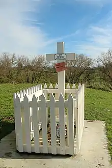 Tarore's grave was located in 1976 at the Matamata pā (fortification) site near the village of Waharoa, and the following year a white cross headstone and plaque were created to commemorate her death, her father's forgiveness and the spread of Christianity through New Zealand that was influenced by her book.[4][6]