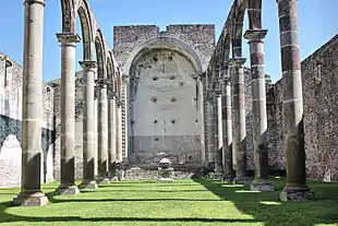 The ruins of the Spanish colonial era Convent of Tecali of Herrera (Ex-Convento de Tecali de Herrera) are a designated Cultural Heritage Monument in the municipality. The former Franciscan convent was completed in 1540, in New Spain (colonial México). It was designed in the Colonial Spanish Renaissance style by Diego de Arciniega.[2]