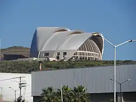 It takes its name from the Santuario de los Mártires (Sanctuary of the Martyrs) built on top of Cerro del Tesoro near the station. Its logo is a stylized image of the controversial temple with its monumental dome highlighted by a cross.